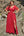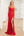 Ein rotes langes Brautjungfernkleid mit Linien-V-Ausschnitt und Stickerei