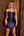 Glitzerndes marineblaues, figurbetontes, trägerloses, ausgehöhltes Homecoming-Kleid mit Schlitz
