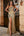 Ein Schulterkleid mit goldenen Fransen und Pailletten und Glitzer für den Abschlussball mit Schlitz