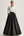 Durchgehender schwarzer Satin-A-Linien-Rock mit Pcokets