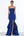 Meerjungfrau trägerloses königsblaues Satinkleid mit Schlitz