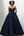 Glitzerndes marineblaues perlenbesetztes A-Linien-Kleid mit langen Ärmeln und Spitze