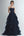 Organza Marineblaues gestuftes trägerloses formelles Kleid in A-Linie