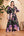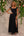 Schwarzes geblümtes A-Linien-Ballkleid mit V-Ausschnitt und Gürtel