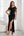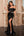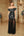 Glitzerndes schwarzes Partykleid mit Spaghettiträgern und Perlen und Schlitz