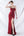 Rotes langes Kleid mit V-Ausschnitt und Schlitz in A-Linie