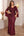 Burgunderfarbenes Ballkleid mit A-Linie und V-Ausschnitt und Faltenapplikationen mit Gürtel und langen Ärmeln
