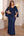 Marineblaues plissiertes A-Linien-Langes Ballkleid mit U-Boot-Ausschnitt