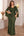 Dunkelgrünes Langes Ballkleid aus Samt mit V-Ausschnitt und langen Ärmeln