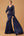 Schwarzes langes Ballkleid mit A-Linie und V-Ausschnitt in Glitzer