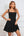 Mantel Spaghettiträger Schwarz Pailletten Kurzes Abendkleid mit gekreuztem Rücken