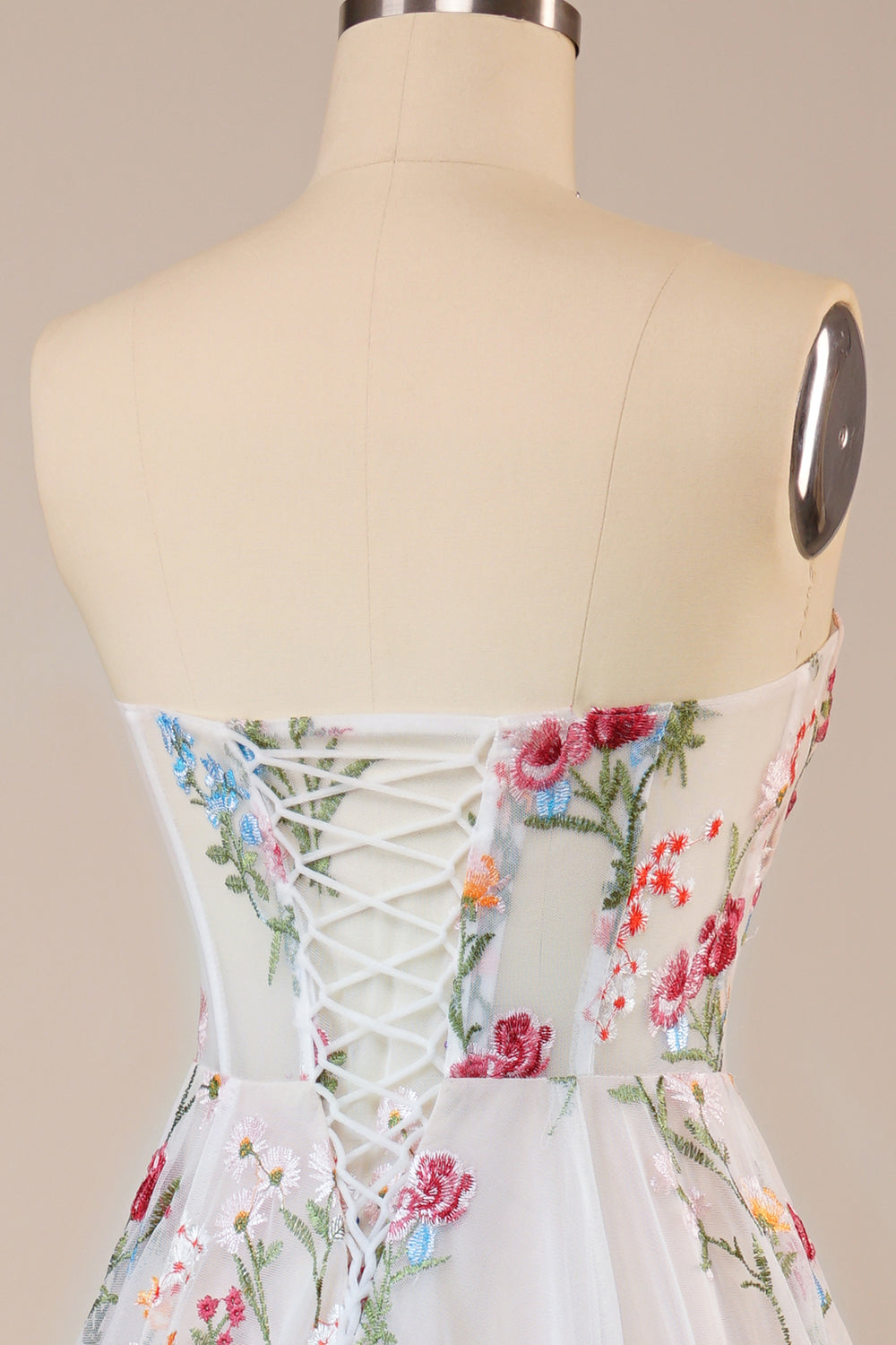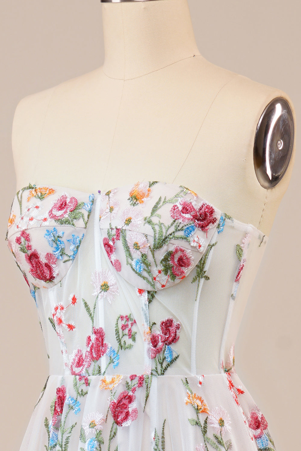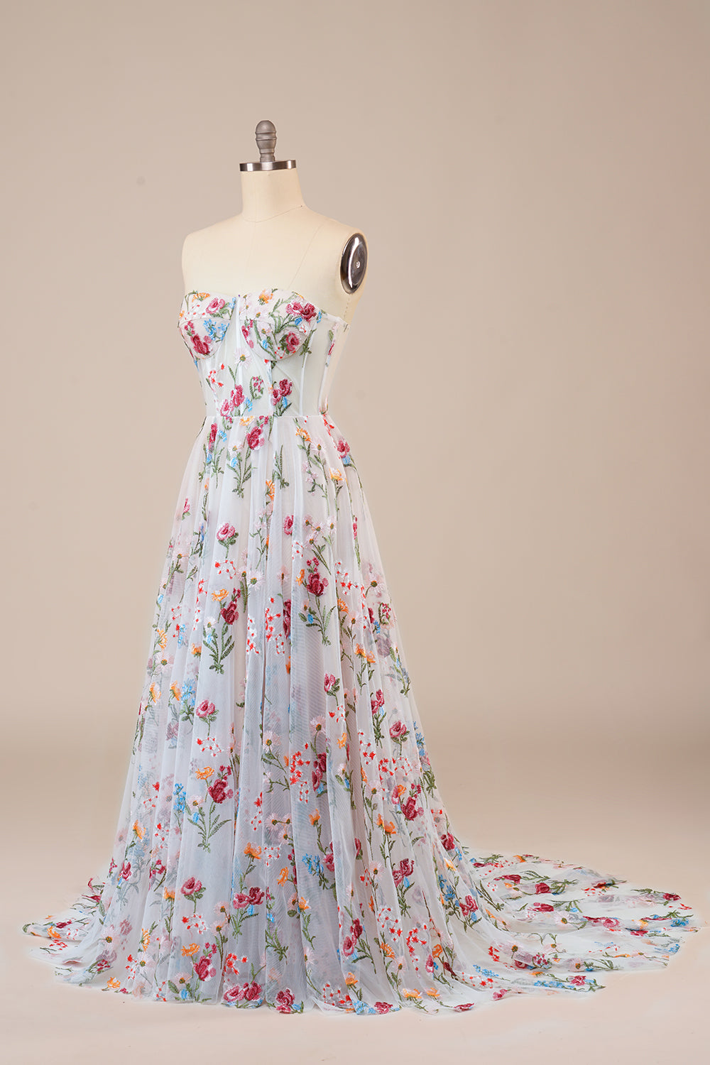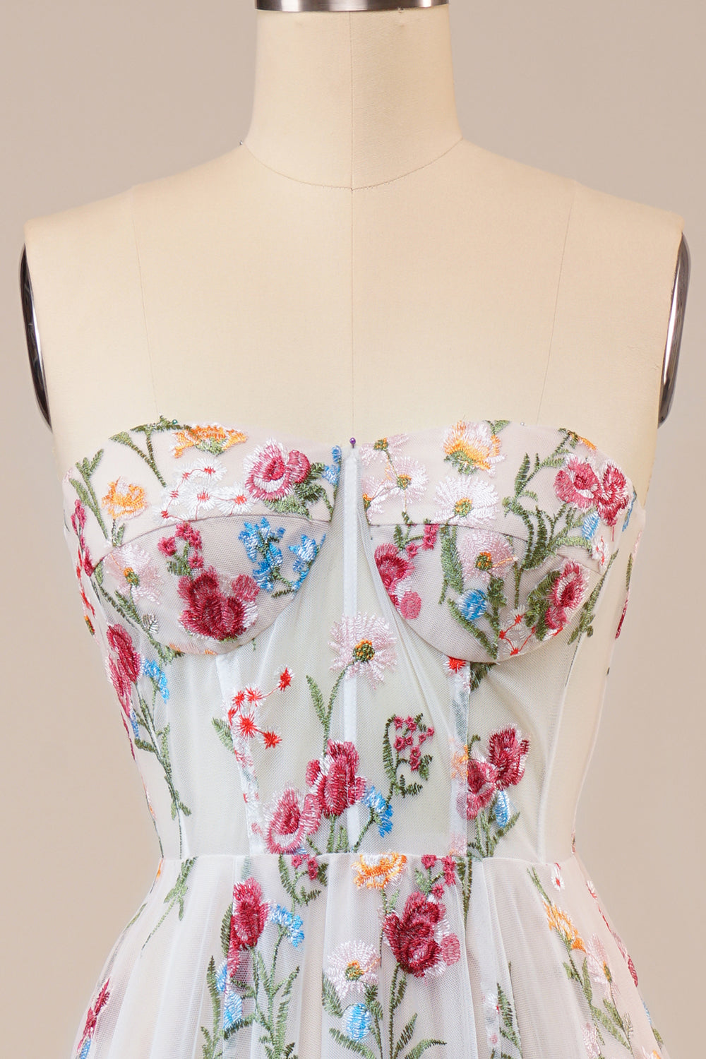 Tüll trägerlos Pinsel Schleppe Elfenbein langes Brautkleid mit Stickerei