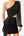Funkelndes schwarzes kurzes Cocktailkleid mit einer Schulter in A-Linie
