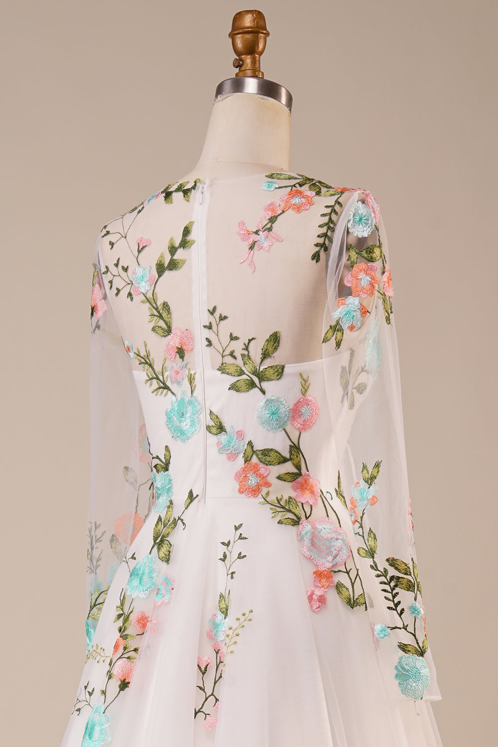 Langärmeliges Elfenbein Brautkleid aus Tüll mit Stickerei